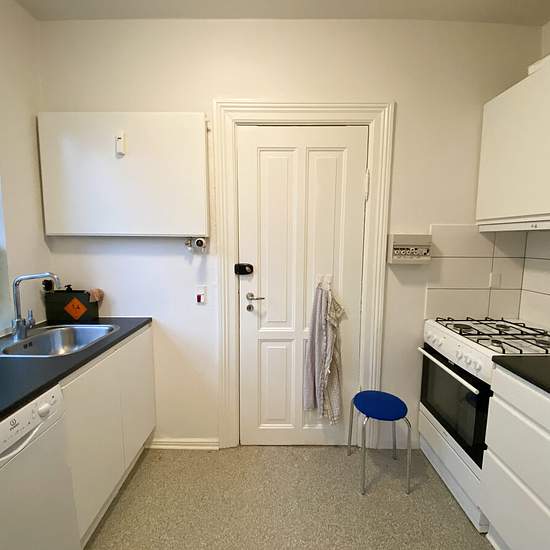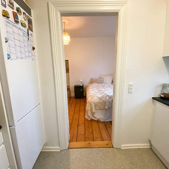 Denne lejlighed er bestående af en stue med et hjørne til overtøj og sko. Rummet har nogle gode vinduer, hvor der strømmer godt med lys ind. Rummet er også meget nemt at indrette. Der er gode trægulve gennem stue og soveværelset, som giver et flot autentisk look. Fra stuen går du ind i soveværelset, hvorfra der er adgang til badeværelset. Badeværelset er nyrenoveret og i flotte hvide klinker, og har trods dens lille størrelse stadig mulighed for at separerer brusebads-delen med en forhængstang. Soveværelset og køkkenet har fra vinduerne uds...