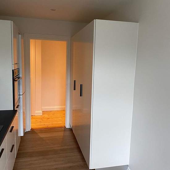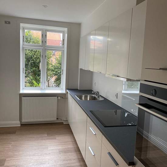 Lejligheden er med lyst køkken, hvor der er installeret: Køle/fryseskab Induktionskogeplader Ovn Emhætte Opvaskemaskine Badeværelset er med håndklædetørre, spejlskab samt vaskeskab. Der er installeret: Vaskemaskine Tørretumbler Der er skydeskabe i soveværelset I entre, stue og soveværelse er der afhøvlede gulve samt look a like trægulv i køkkenet. Særdeles velholdt ejendommen opført i 1935. Der er i 1983 isat nye vinduer og gårdsiden har i 2003 fået nye altaner. Der erforetaget gårdsanering og ejendommen er medlem af et gårdlaug.I kæld...