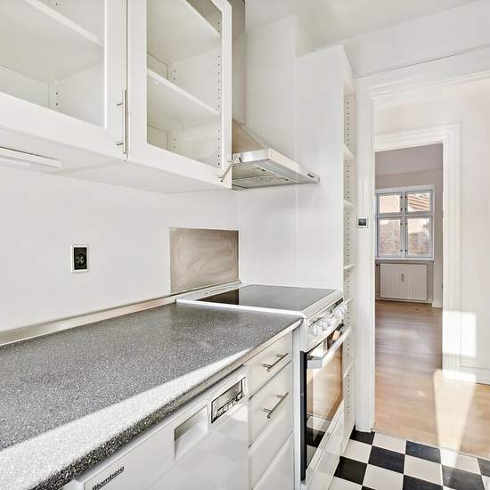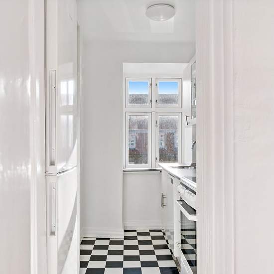 Velkommen til en lys og indbydende 2-værelses lejlighed på 44 m2 i en klassisk byejendom. Boligen byder på en funktionel planløsning med separat køkken, to gode rum og et enkelt, velholdt badeværelse – ideel til dig, der vil bo kompakt og velfungerende, eller til to, der ønsker at dele. Du træder ind i en praktisk entré med plads til overtøj, hvorfra der er adgang til boligens øvrige rum. Det separate køkken er lyst med vindue, hvide elementer og en sober flisebagvæg. Her er god bord- og skabsplads samt alle de nødvendige hvidevarer, herund...