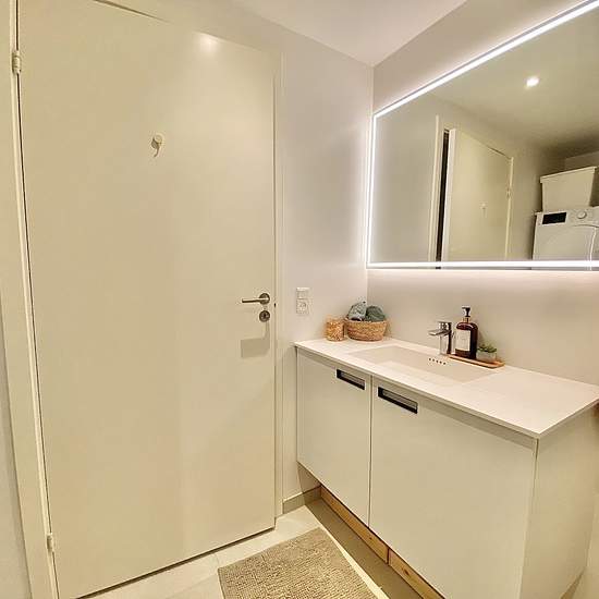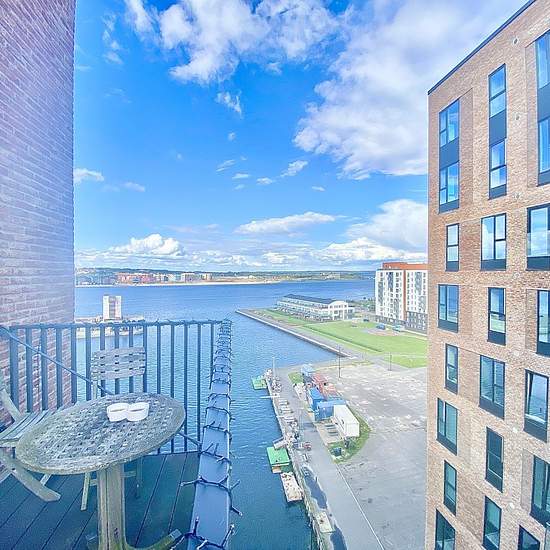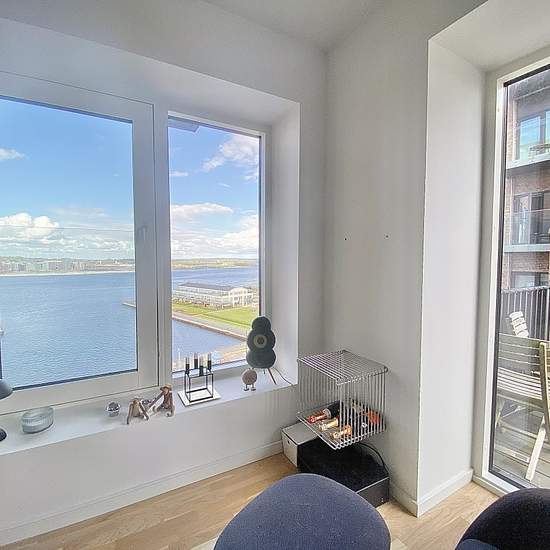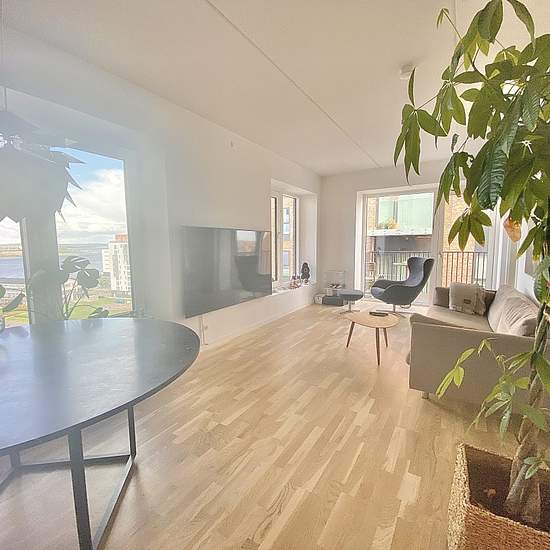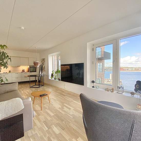 Velkommen til Østre Havnepark! Her finder du denne lyse og nybyggede 2-værelses bolig med et fantastisk fjordkig. Lejligheden har en fin og praktisk entré, hvor der er oplagt plads til sko og overtøj. Fra entréen er der adgang til lejlighedens flotte badeværelse med stor bruseniche og vaskesøjle. Lejlighedens køkken er leveret af Svane - og kommer med lækker Quooker, opvaskemaskine, kogeplade, ovn og emhætte - og med god skabsplads, naturligvis. Stuen er lang og lys - og giver fin plads til spisebord, sofa og fjernsyn. Fra stuen er der l...