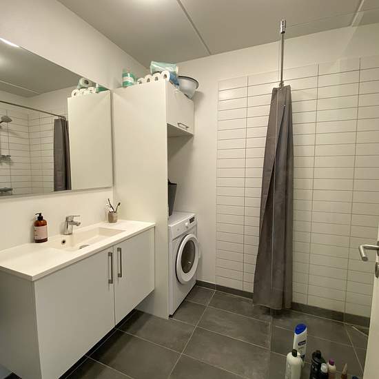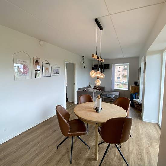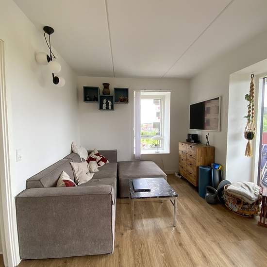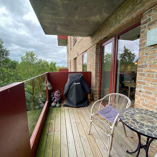 Stor 2-værelses lejlighed med altan og parkeringslicens Denne lejlighed er indrettet med et stilfuldt Svanekøkken, der rummer alle nødvendige hvidevarer. Badeværelset er moderne og funktionelt med vaskesøjle, og hele boligen har gulvvarme samt vedligeholdelsesfrie gulve, som sikrer høj komfort og nem rengøring. Soveværelset er stort og rummeligt med indbyggede skabe, der giver både opbevaringsplads og en indbydende atmosfære. Fra stuen er der adgang til en altan med skøn udsigt over både Golfparken og Aalborg by. Lejligheden ligger i det ...