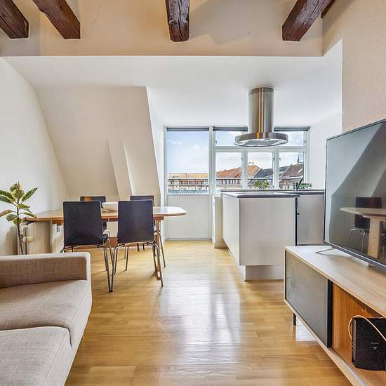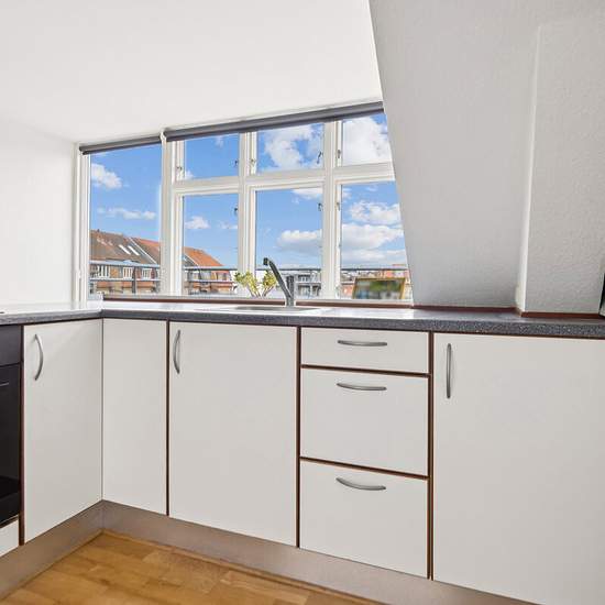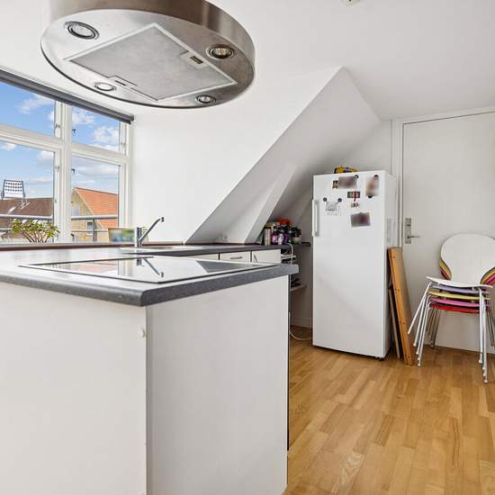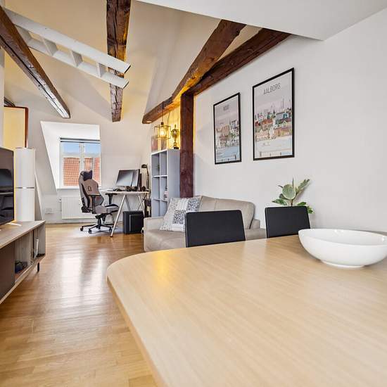 Velkommen til Kastetvej 59, hvor du finder denne velindrettede 2-værelses lejlighed på 49 m², beliggende øverst i ejendommen. Her får du et skønt lysindfald, en rolig atmosfære og en bolig med masser af charme. Lejligheden fremstår indbydende og elegant med en funktionel planløsning, der udnytter kvadratmeterne optimalt. De flotte synlige bjælker i loftet giver boligen karakter og personlighed, mens hemsen tilfører ekstra fleksibilitet – perfekt som soveplads eller opbevaring. Fra stuen er der udgang til altan, hvor du kan nyde udelivet i r...