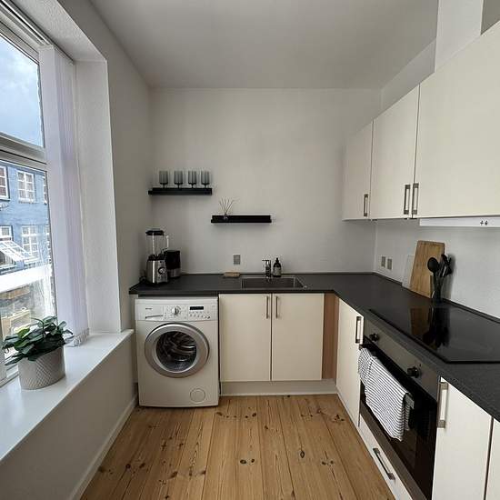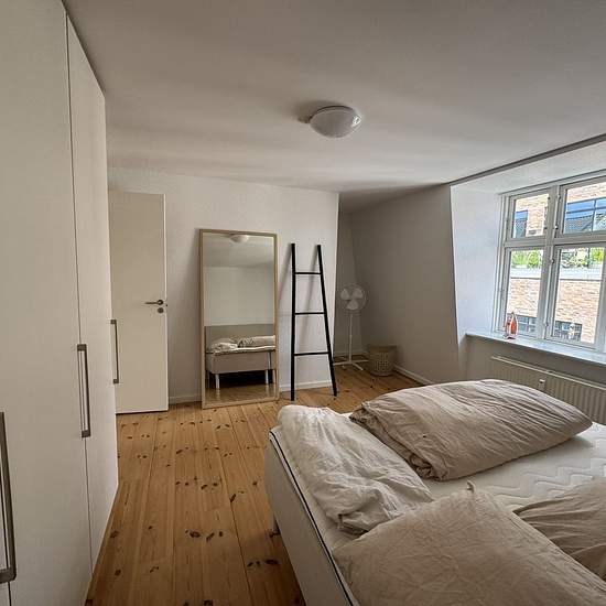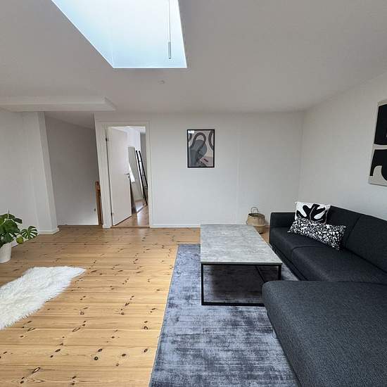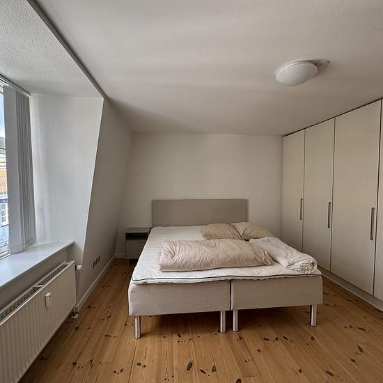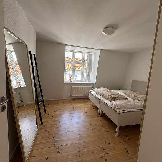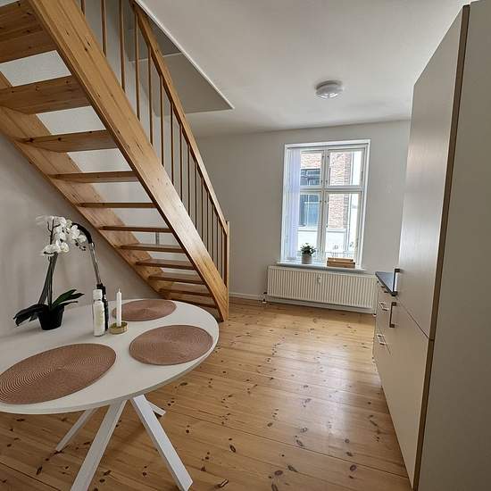 Velkommen til denne 3-værelses lejlighed hvor lys og kvalitet møder en central beliggenhed i Aalborgs hyggelige gågade. En indflytningsklar bolig med en behagelig atmosfære, perfekt til dig der ønsker at bo midt i byen. Lejligheden strækker sig over to plan og byder på en rummelig entré, der fører til et lækkert badeværelse med bruseniche. Det åbne køkkenalrum er lyst og indbydende, med udsigt til den livlige gågade. Herfra en flot trappe til overetagen, hvor du finder en lys opholdsstue med ovenlysvindue samt et rummeligt soveværelse udsty...