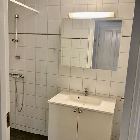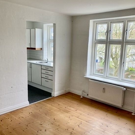 Hyggelig lejlighed med bl.a. hvidt køkken med spiseklap, komfur, køle/fryseskab og emhætte. Badeværelse med fliser på gulv og loft, spejlskab og brusestang. Skab i soveværelse. Oliebehandlede trægulve i entre, stue og soveværelse samt linoleum i køkken. Der er porttelefon.Fælles vaskeri i kælder. Husdyrhold er ikke tilladt. Kontakt os for fremvisning på tlf.: eller sms: Lejenr: 1214OAAB