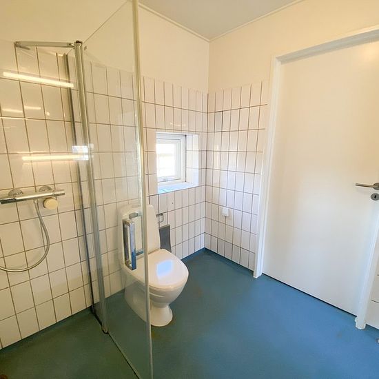 Denne super dejlige lejlighed er meget rummelig og lys. Når man træder ind i lejligheden kommer man ind i entreen, hvor man kan sætte sit overtøj og sko, inden man kommer ind i lejligheden. Fra entreen har vi også den ene indgang til badeværelset. Ejendommen er handicap/ældrevenlig, og har derfor to indgange. Man kan selvfølgelig altid vælge, at lukke det ene af, og eventuelt stille en kommode m.m. foran. Når man træder ligeud fra entreen kommer vi ind i den store stue, hvor man kan se, at der er masser af gulvplads og nogle gode vinduer. De...