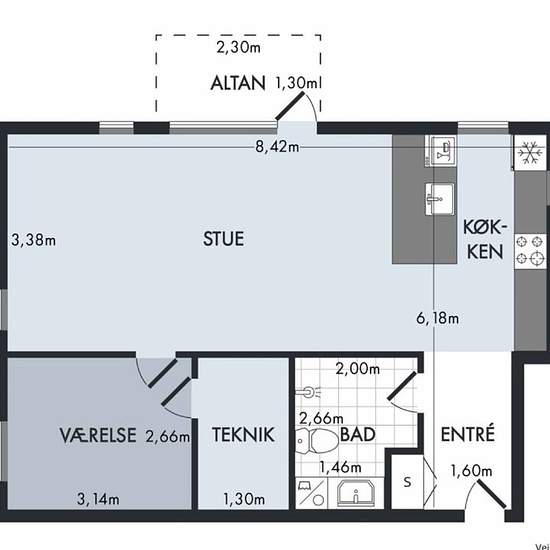 - 2 værelser