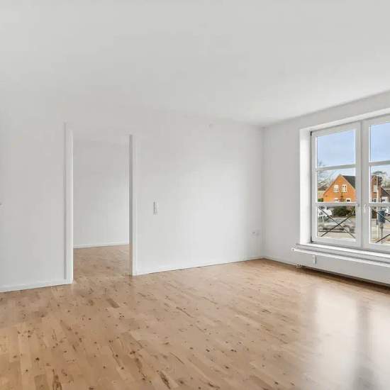 Velkommen til denne lejlighed hvor lys møder kvalitet. En indflytningsklar bolig med en behagelig atmosfære. Lejligheden byder på en lys entré, der fører til en rummelig stue med store vinduer, der sikrer et dejligt lysindfald. De lyse trægulve og de hvide vægge skaber en tidløs ramme, der indbyder til personlig indretning. Køkkenet er moderne og funktionelt med god plads til madlavning, herunder integrerede løsninger og opvaskemaskine, som gør hverdagen lettere. Soveværelset er lyst og indbydende med plads til både seng og opbevaring. Bade...