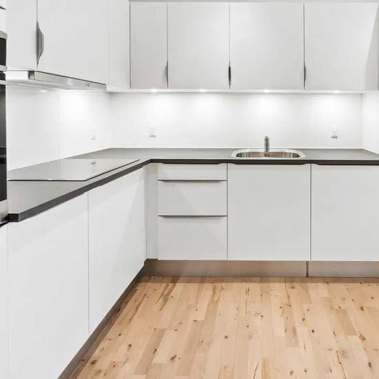 Velkommen til denne lejlighed hvor lys møder kvalitet. En indflytningsklar bolig med en behagelig atmosfære. Lejligheden byder på en enkel og hverdagsvenlig planløsning. Entréen er indbydende med plads til overtøj og spotbelysning, der skaber en varm velkomst. Den store, lyse stue åbner sig med brede vinduespartier, som bader rummet i naturligt lys. De gennemgående, lyse trægulve giver en harmonisk og moderne følelse. Køkkenet er stilrent indrettet med hvidt design, solide bordplader og god skabsplads. Her finder du induktionskogeplade, ind...