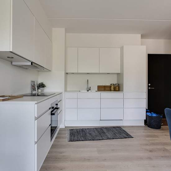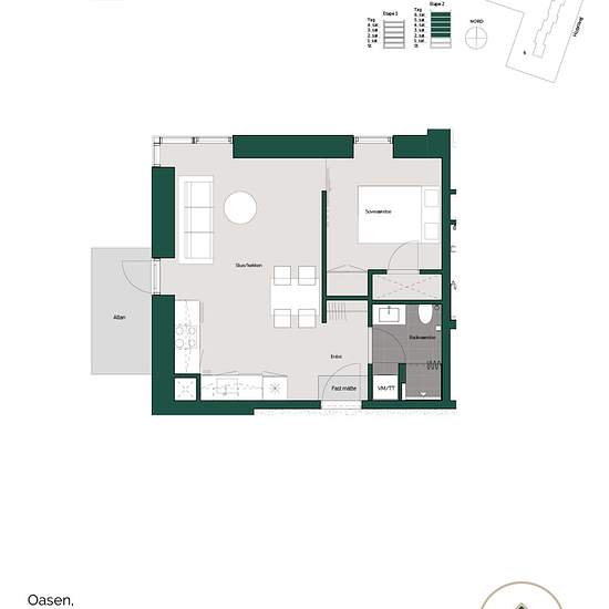 Her er muligheden for at leje en skøn 2-værelses lejlighed i Oasen. Lejligheden er indrettet med entre, hvor der er mulighed for at komme af med sko og overtøj i en indbygget garderobe med LED-lys. Fra entreen er der direkte adgang til køkken og stue, hvor køkkenet indeholder køle-/fryseskab, komfur, ovn og opvaskemaskine, og herudover er der både god skabsplads og bordplads. Fra stuen er der adgang til soveværelset, som har indbyggede skabe, og hvor man kan ligge i sengen og kigge ud over hele den grønne Oase. I lejlighedens badeværelse, so...
