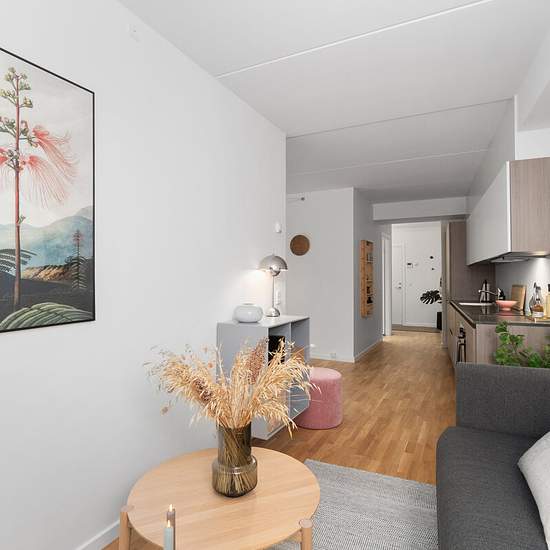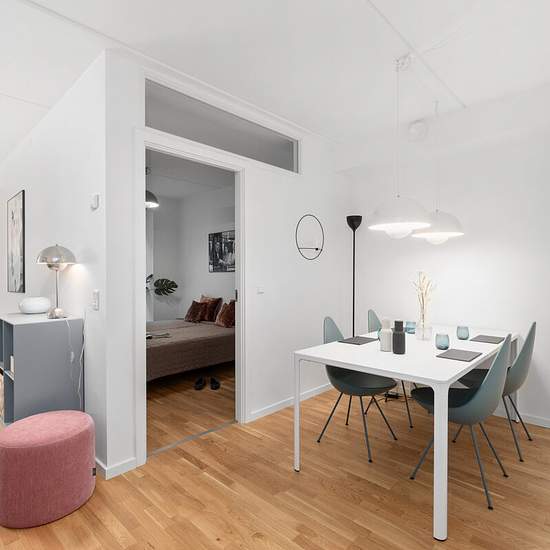 Velkommen til denne 2 værelses lejlighed. Her er der fin plads til sko og overtøj et rummeligt køkken alrum med gode indretningsmuligheder samt et fint værelse. Lejligheden har flotte egetræsgulve, der skaber en varm og indbydende atmosfære og giver rummet et eksklusivt præg. Planløsningen udnytter kvadratmeterne optimalt. En ideel bolig til dig, der ønsker en lejlighed med kvalitetsmaterialer og et tidløst udtryk. Lejligheden er udstyret med køkken fra Rotpunkt, hårde hvidevarer fra Siemens og badeværelse med Grohe-armaturer. Derudover er d...
