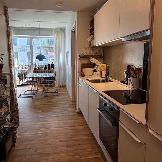 Om Nabolaget I Aarhus Nord finder du Nabolaget, som består af 390 kvalitetslejligheder opført med fokus på at danne nogle dejlige rammer om din hverdag. Her finder du egetræsgulve, vægge af rå beton og charmerende genbrugsmursten i nogle af lejlighederne. Du får smuk natursten på badeværelserne, og køkkenerne er hvide HTH-køkkener. Der er opvaskemaskine, vaskemaskine og tørretumbler i alle lejligheder. Derudover er der også gulvvarme i alle lejlighederne. Uddannelser lige i nærheden Nabolaget er beliggende på hjørnet mellem Møllevalgs Al...