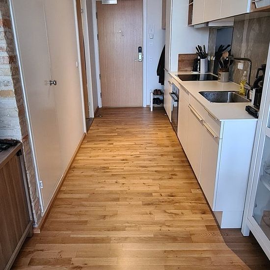 Om Nabolaget I Aarhus Nord finder du Nabolaget, som består af 390 kvalitetslejligheder opført med fokus på at danne nogle dejlige rammer om din hverdag. Her finder du egetræsgulve, vægge af rå beton og charmerende genbrugsmursten i nogle af lejlighederne. Du får smuk natursten på badeværelserne, og køkkenerne er hvide HTH-køkkener. Der er opvaskemaskine, vaskemaskine og tørretumbler i alle lejligheder. Derudover er der også gulvvarme i alle lejlighederne. Uddannelser lige i nærheden Nabolaget er beliggende på hjørnet mellem Møllevalgs Al...