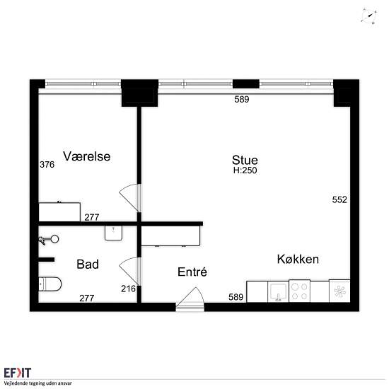 2 værelses lejlighed i centrum