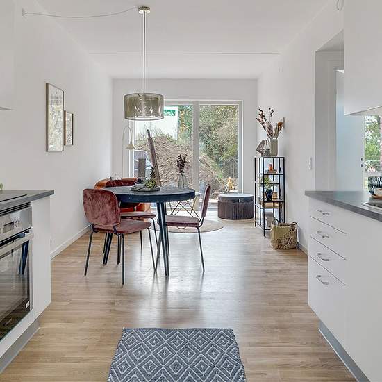 Hyggelig og med altan En hyggelig, lille 2-værelses med altan. Flot køkken med enkle elementer i grå og hvid fra Invita og med alle hårde hvidevarer fra Blomberg (køleskab, fryser, opvaskemaskine, emhætte og komfur med induktion). Fra stuen er der direkte udgang til dejlig altan. Badeværelset er moderne og enkelt indrettet med grå fliser på gulvet og hvide fliser på vægge. Brusenichen er klargjort til opsætning af badeforhæng, der er vægophængt håndklædetørrer, knager, væghængt toilet, indbyggede spots i loftet og varme i gulvet. Gode featu...