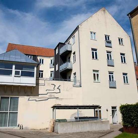 VELKOMMEN TIL BYHUSENE - Spændende bygninger i absolut centrum af Haderslev Boligerne - Bynært med fælles tagterasse Etagebyggeri i fire etager med elevator og butik nederst. Boligerne er velegnet til bevægelseshæmmede. Ejendommen er oprindelig opført i 1890 men totalrenoveret, så den opfylder tidens krav til moderne boliger. Der er fællesvaskeri i bygningen samt cykelskur og -kælder. På 1. sal ligger en fælles kæmpe tagterrasse. Her er opført et hus med siddeplads og borde til omkring 25 personer, så vejret er ingen undskyldning for at tænd...