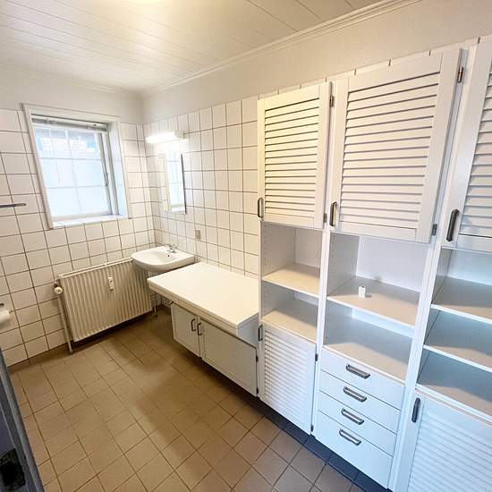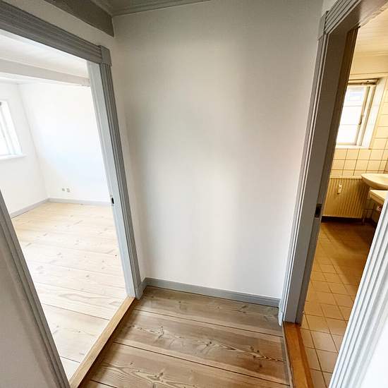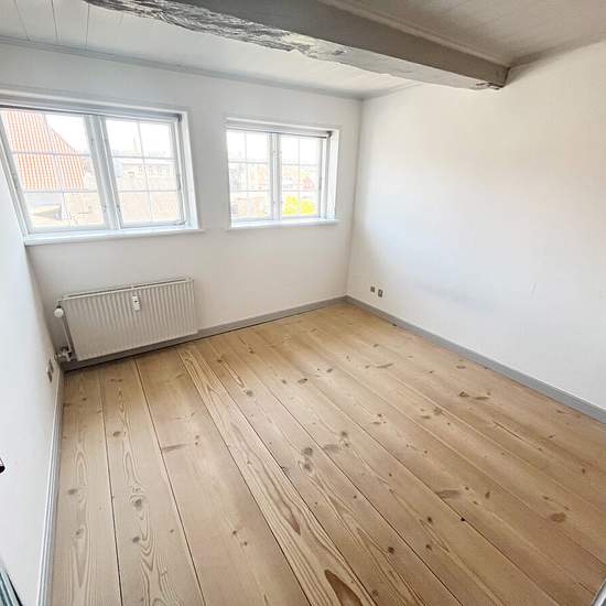 I den gamle bydel af Haderslev med brostensbelagte gader ligger ejendommen Slotsgade 23 som er blevet præmieret for sin renovering. Lejligheden fremstår som en stor 2 værelses lejlighed med gode store rum og med spiseplads i køkkenet.