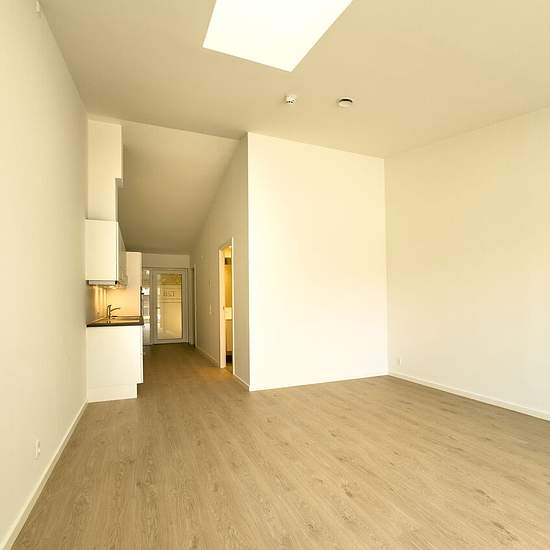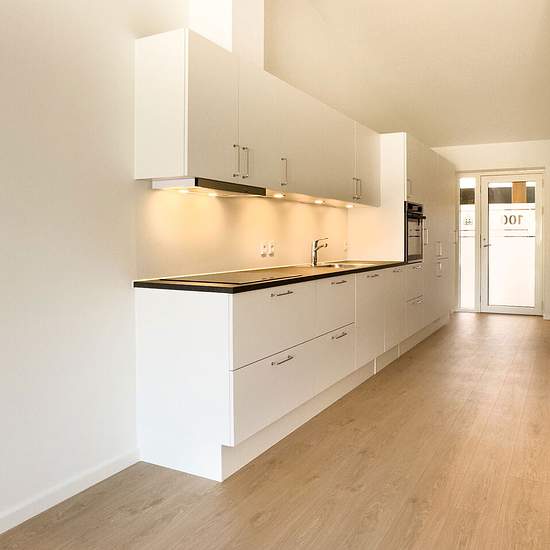 Velindrettet 2-værelses på 1. sal med elevator. Fra entréen er der adgang til både stort soveværelse og garderobeplads. Herefter åbner lejligheden sig mod et lyst køkken-alrum i forlængelse af stuen, med Svane-køkken i hvide elementer, mørk bordplade og integrerede Blomberg-hvidevarer. Badeværelse med grå klinker, glasafskærmet bruseniche og væghængt toilet. Fra stuen er der adgang til en stor altan i hele lejlighedens bredde mod vest med aftensol. Fællesfaciliteter og fællesskab Som beboer får du ikke kun en moderne lejlighed, men også adg...