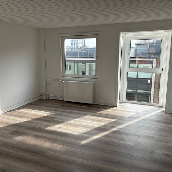 Lejlighed på Herning Gågade - med altan Beliggenhed Lejligheden er beliggende attraktivt i Herning, tæt på gågaden. Her er kort afstand til indkøb, caféer og byliv, samtidig med at området opleves roligt og behageligt. Køkken Velindrettet og nyrenoveret køkken med køle/frys, komfur og emhætte. Det store vindue sørger for et behageligt lysindfald og skaber en lys og åben stemning i rummet. Derudover er der plads til vaskemaskine, hvilket giver ekstra fleksibilitet i hverdagen. Badeværelse Pænt og nyrenoveret badeværelse, hvor vinduet bidrage...