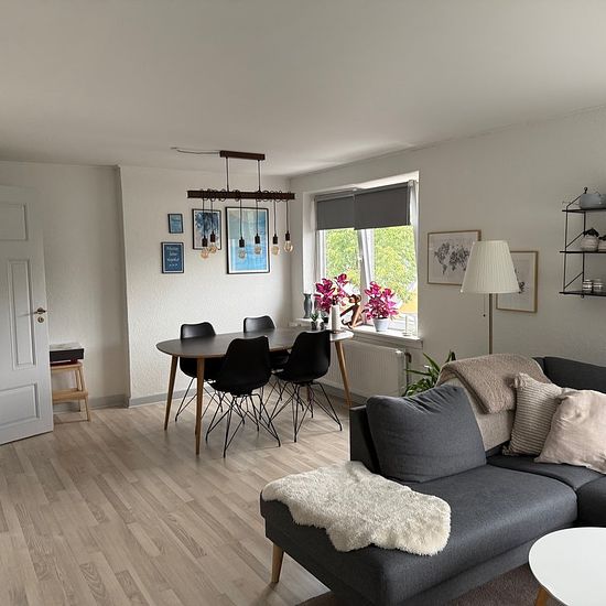 God stor 2 vær. lejlighed beliggende på 1. sal på 88m2, udlejes. Lejligheden har nyere køkken og bad, samt fælles gårdhave og adgang til delt haveskur. Fra entreen er der adgang til køkken, badeværelse, et stort soveværelse og en dejlig stor stue. Lejligheden overtages nymalet og med nyere laminatgulve. Mindre velopdragen hund eller kat, er tilladt. Der er i 2022 installeret nyt køkken inkl. opvaskemaskine. Der er adgang til skur i gården samt fælles gårdhave. Der medfølger desuden vaskemaskine. OBS: Der er mulighed for indflytning før d...