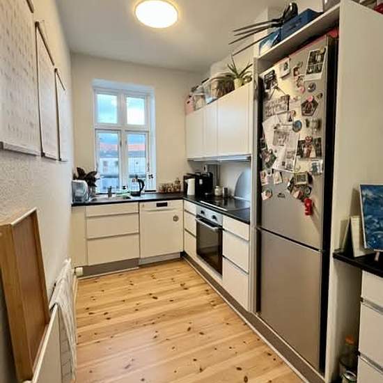 **Lys og moderne 2-værelses lejlighed i hjertet af Horsens** **FACTS:** Adresse: Sønderbrogade 12C, 1. tv Vær: 2 Kvm: 55 Leje: 6.200 kr./mnd. A/C vand og varme: 500 kr/mnd Indflytningspris: 3 mnd depositum + første måneds husleje og A/C = 25.300 kr. Indflytning: ¼ Husdyr: tillades efter nærmere aftale og individuel vurdering Drømmer du om at bo midt i Horsens, hvor byliv, caféer og shoppingmuligheder er lige uden for døren? Så er denne pæne og indflytningsklare lejlighed på 1. sal det helt rette match for dig. Lejligheden er ...
