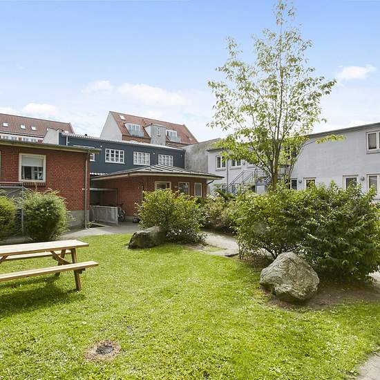Hyggelig 2 værelses lejlighed i stueplan - køkken/alrum, laminatgulv. Stor sydvendt terrasse og hyggelig haveanlæg. Tæt på havnen. 10 min. gang til gågaden og centrum. Lejligheden er beliggende i ejendom, der løbende er moderniseret. Vask/tørretumbler og kold vand er inkluderet i huslejen. Husdyr tilladt under særlige vilkår, forhør nærmere på kontoret