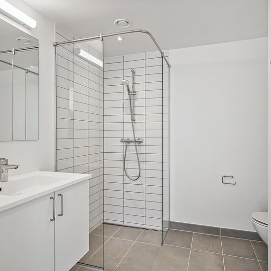 Flot og lys 2-værelses lejlighed Rummelig, moderne lejlighed med stort og lyst køkkenalrum. Lejligheden har et værelse med indbyggede skabe og en entré med ekstra opbevaringsplads. Køkkenet er udstyret med køle-fryseskab, keramisk kogeplade, emhætte, indbygningsovn og opvaskemaskine. Badeværelset er lyst og har bruseniche samt vaskesøjle. Bygningerne er omkranset af store, grønne fællesarealer med hyggelige stier og beplantning. Der er fælles drivhuse, højbede og bålplads, som beboerne sammen dyrker og passer. Det er muligt at leje en parke...