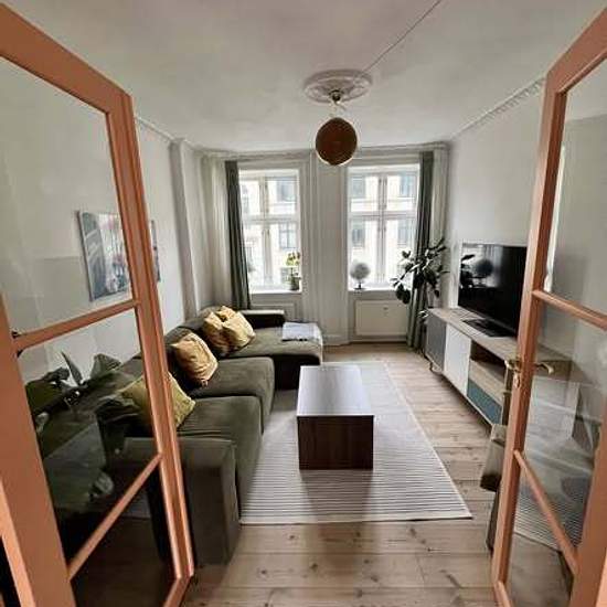 Furnished 2V Vesterbro for rent 3/3-1/8 Møbleret 2V i hjertet af Vesterbro udlejes fra 3/3-1/8(5 måneder) med mulighed for forlængelse. Lejligheden har et soveværelse med dobbeltdøre til fransk altan med udsigt til stor, grøn gård, entré med opbevaring, badeværelse med seperat brus, køkken-alrum og stue. Lejligheden udlejes fuldt møbleret. Egnet til par eller enkeltperson. Husleje er 14.000 pr måned eksl. forbrug. Kæledyr ikke tilladt. Område: 5 minutters gang til Enghave plads + metro, Enghave Parken, Istedgade, Sønder Boulevard og alt...