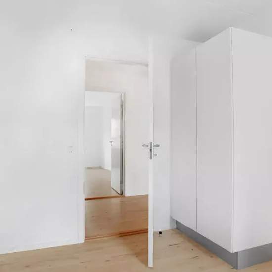 Lejligheden Lejligheden er opført i lyse og tidsløse materialer, med stort lysindfald, solide parketgulve samt hvidmalede vægge, lofter og paneler. Den rummelige stue leder op til et funktionelt køkken med god skabsplads, komfur, køle- og fryseskab, emhætte samt opvaskemaskine. Badeværelse byder på separat bruseniche og vaskesøjle. I soveværelset findes der skabe, med mulighed for opbevaring, og der er desuden tilknyttet et 3-4 kvm depotrum i kælderen. Det er muligt at ansøge om husdyrtilladelse i alle vores lejemål. NB: billederne viser ikk...