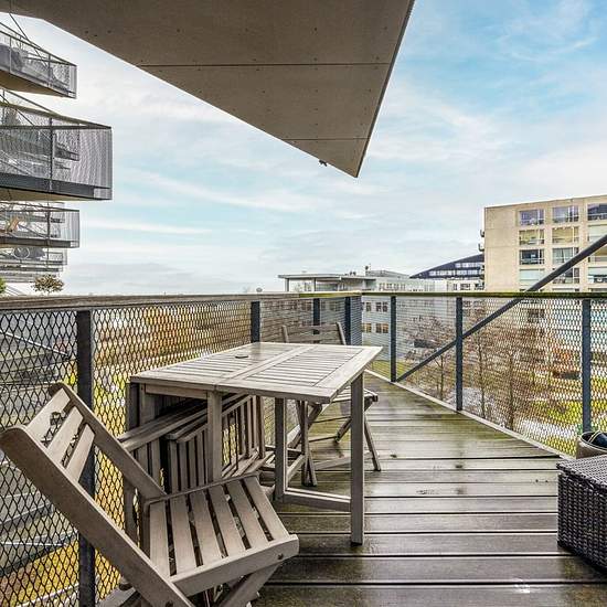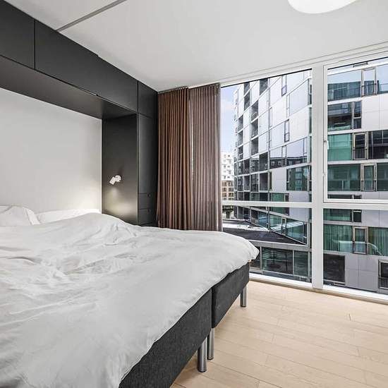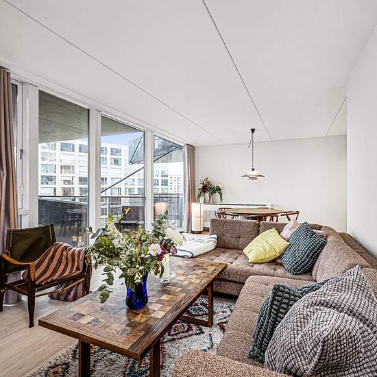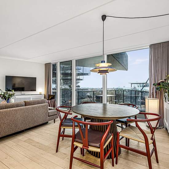 Nu har du en sjælden mulighed for at flytte ind i et arkitektonisk ikon i hjertet af Ørestad. Denne lejlighed er beliggende i det prisbelønnede V-hus, der sammen med nabobygningen M-huset udgør de verdenskendte VM-huse. Byggeriet er tegnet af stjernearkitekter fra BIG og JDS og står som et af Københavns mest markante vartegn. At bo i V-huset betyder, at man bliver en del af en moderne klassiker, der er berømt for sin radikale glasfacade og de karakteristiske “hajtands-altaner”, som sikrer hver enkelt lejlighed maksimalt lysindfald og en ufor...