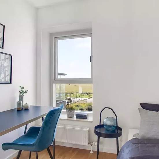 Lejligheden Lejlighedens hjerte er et centralt opholdsrum med åbent køkken, spiseplads og opholdsstue. Lejligheden er opført i klassiske, tidssvarende materialer og har store vinduer, hvilket giver et fantastisk lysindfald. Køkkenet, som er fra Invita, fremstår lyst og med indbyggede, hårde hvidevarer fra Siemens. Badeværelset er praktisk med gulvvarme, indbyggede spots, separat bruseniche samt vaskesøjle. I soveværelset er der installeret skabe med plads til opbevaring. Det er muligt at ansøge om husdyrtilladelse i alle vores lejemål. OBS: ...