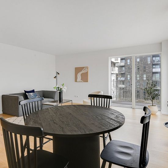 Rigtig flot 2 værelses lejlighed med indbydende planløsning, perfekt til parret eller den enlige. Køkkenet er udført i et stilrent, hvidt design med integrerede hårde hvidevarer og gode arbejdsflader, der gør madlavningen til en fornøjelse. Den åbne løsning giver samtidig mulighed for samvær, så man kan være en del af samtalen, mens maden tilberedes. Badeværelset er lavet med stilfulde materialer som gør det lyst og indbydende, samt en vaskesøjle. Beliggenheden kombinerer det bedste fra by og natur. Med blot ca. 600 meter til Øresund Stat...