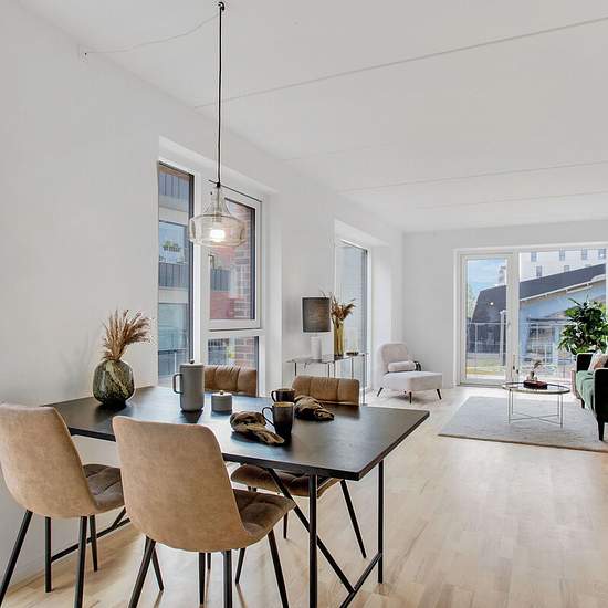 Boligerne i Blåklokken henvender sig til både singler og familier med og uden børn, der drømmer om at slå rødder i grønne og rolige omgivelser tæt på København. Samtidig er boligerne ideelle for ældre, som ønsker et trygt, rart og bekvemmeligt seniorliv. Lejlighederne er opført i høj kvalitet med gennemtænkte og optimale rumløsninger. Her får du gedigne trægulve, lyse og nordiske køkkener fra Svane Køkken, moderne hårde hvidevarer fra Siemens samt funktionelle badeværelser, der er designet til hverdagens behov. Blåklokken boliger ligger di...