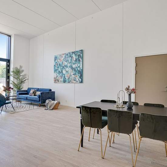 Lejlighederne på Skovbrynet i Lyngby er en smuk repræsentant for New Nordic Design, hvor respekten for den skandinaviske ”form og funktion” er vægtet ligeså højt, som behovet for velvære og gode sociale rammer. Lejligheden er ikke møbleret og du betaler vand, varme, el og fibernet aconto pr.måned De store vinduer rækker fra gulv til loft og giver de bedste vilkår for at nyde den imponerende udsigt og lade det naturlige dagslys fylde rummene. De opvarmede, lyse træplanker giver et behageligt og indbydende indtryk og masser af muligheder for a...