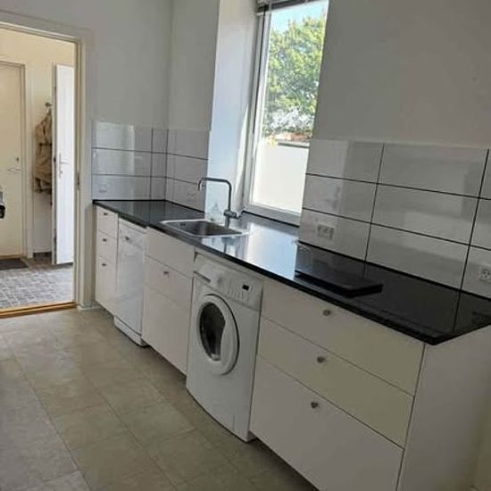 Nu har du muligheden for at leje en rummelig og velbeliggende lejlighed i hjertet af Løgstør! Adresse: Jernbanegade, 9670 Løgstør Størrelse: 100 m² Antal værelser: 3 Udeareal: Fælles have med robotplæneklipper Depot/skur: Ja, tilhørende skur følger med Lejligheden ligger i stueplan og er dermed nemt tilgængelig. Den byder på god plads og en praktisk indretning med store rum. Boligen egner sig både til par, singler eller ældre, der ønsker at bo centralt og bekvemt. Du får adgang til en hyggelig, fælles have, hvor græsset bliver slået automati...