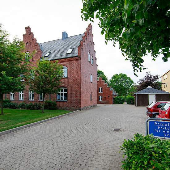 Charmerende byggeri i 3 plan beliggende i stor flot have. Der er elevator til 1. sal. Lækkert glasparti på bagsiden af bygningen, der dækker stue og 1. sal - forår og efterår kan her nydes betydeligt længere hvert år. Der er skønne fællesarealer i ejendommen og dejligt stort fællesrum i separat bygning. Bofællesskab for 50+, som ønsker socialt samvær. Beliggende meget tæt på bymidte, bibliotek, Østerstrand, parkanlæg og havn.