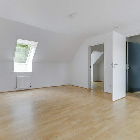 Velkommen til en indflytningsklar lejlighed med en behagelig, lys atmosfære og charmerende skråvægge. Planløsningen er funktionel med entré, stor stue, soveværelse, separat køkken og et rummeligt badeværelse. Lejligheden ligger i tagetagen, hvilket giver et roligt udtryk og fine kig til trækronerne gennem både vinduer og ovenlys. Stuen er lejlighedens naturlige samlingspunkt med god plads til både sofa- og spiseafsnit eller et lille hjemmearbejdsområde, alt efter behov. De lyse gulve og hvide vægge gør det nemt at indrette personligt, og de...