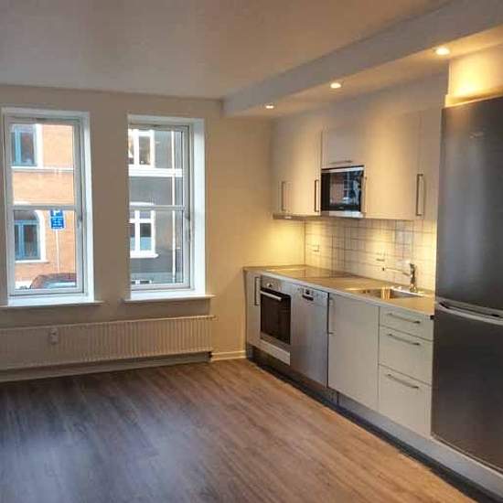 Lejligheden ligger på Klostervej 5 i hjertet af Odense, hvor du er omgivet af byens liv og atmosfære. Her bor du med kort afstand til gågaden, banegården og havnen, og der er nem adgang til både letbanen og bybusser, som gør det let at komme rundt i byen. Indkøbsmulighederne er mange og lige i nærheden, hvilket gør hverdagen praktisk og overskuelig. Lejligheden er beliggende i en totalrenoveret ejendom. Lejemålet fremstår lys og indbydende med en varm atmosfære. Den indeholder komfur, køleskab, emhætte, opvaskemaskine samt mikroovn, hvilket ...