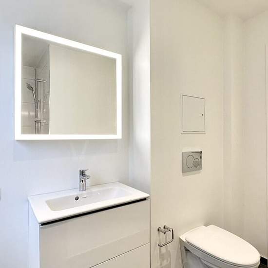 2 værelses – Grønløkkevej 15, 1. th – 5000 Odense C I skønt 6 families hus udlejes denne lækre nyrenoveret 2. vær. lejlighed på 63 m2 beliggende på 1. sal., kun 1 kilometer fra gågaden i Odense City og nær letbanestop. Lejligheden har god lys stue, stort soveværelse, godt med plads til skabe, computerplads m.m. Lækkert flisebadeværelse med brus og inventar fra Grohe og Duravit, samt flot stort køkken fra Designa med masser af skabsplads og alt i Miele hårde hvidevarer, herunder opvaskemaskine. Der er afhøvlede gulve, dørtelefon, fælles vaske...