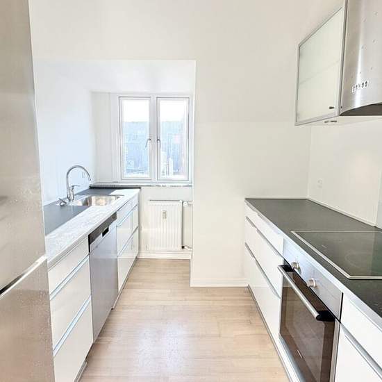 2 værelses – Østerled 13, 2. th. – Odense C Beliggende mellem Nyborgvej og Christiansgade udlejes lækker nyrenoveret 2 værelses lejlighed på 58 m2 beliggende på 2 sal. Lejligheden har god entré hvorfra der er adgang til samtlige rum. Der er lækkert nyt højglanskøkken med alle hårde hvidevarer, herunder opvaskemaskine. Lækkert flisebadeværelse med bruseniche. Stor lys stue samt godt soveværelse. Der er flotte afhøvlede gulve, dørtelefon, fælles vaskeri samt kælderrum. Leje pr. mdr. kr. 6.303,00 + varme kr. 500,00 + vand kr. 400,00. Depositum ...