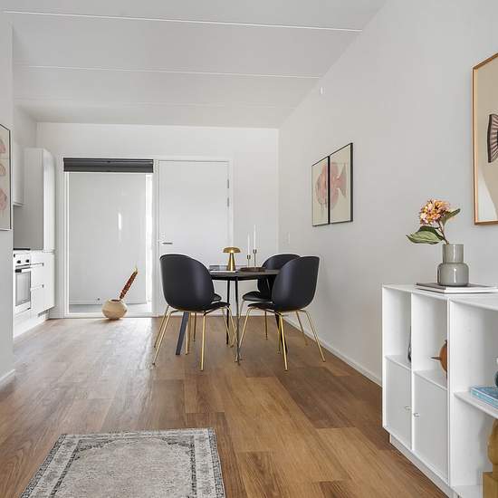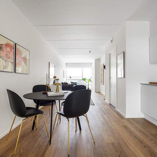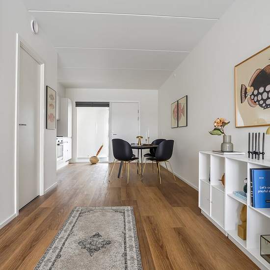 Pakhuskajen byder på et stort udvalg af 2-3-4 værelses lejligheder ved havnen Pakhuskajen tilbyder et stort udvalg af 2-3-4 værelses lejligheder ved Odense Havn, der passer perfekt til både par, singler og familier. Hver lejlighed har enten en altan eller terrasse samt et praktisk depotrum i stueetagen. Boligerne er lyse og moderne med matlakerede egetræsgulve og gulvvarme. Køkkenerne er stilrene og nordiske, hvilket gør dem til hjemmets centrum, ideelle for socialt samvær. Nogle lejligheder er indrettet som delevenlige boliger, og visse...