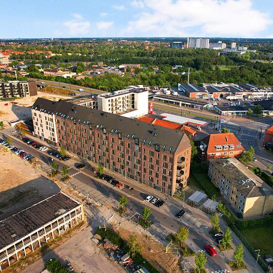 Havekvarteret i Odenses nye grønne bydel er tænkt som et moderne byhus-kvarter. Her byder PFA på 72 lejeboliger herunder lejligheder og rækkehuse i to plan. Første og anden sal består af større 4-værelses boliger på 97 - 121 m2 . Hjertet i boligerne er det store køkkenalrum og stue i ét, der har et fantastisk lysindfald fra begge sider. Fra stuen er der udgang til en skøn tagterrasse med god plads til havemøbler, grill og måske en blød sofa at slænge sig i. I stueetagen finder du velindrettede 2- og 3-værelses boliger med ekstra brede døre ...