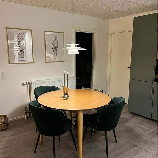 Nyrenoveret lejlighed på 80 kvadratmeter lejes ud i centrum af Ølgod. Der er køkken/alrum/stue med adgang til stor flot egen udendørs terrasse, toilet med mulighed for vaskemaskine og tørretumbler, samt to store værelser. De lyserøde fliser i køkkenet er click’n tile og kan tages ned, eller købes med, hvis ønskes. Der er mulighed for at tilkøbe opvaskemaskine og to klædeskabe. Husdyr er tilladt.