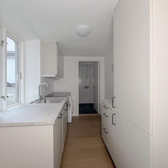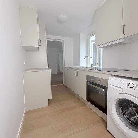 Lejligheden er nyrenoveret og fremstår lys og moderne med gode materialer og en funktionel planløsning. Den egner sig perfekt til singlen eller parret, der ønsker en central beliggenhed kombineret med moderne komfort. Lejligheden byder på: Rummelig stue med god plads til både sofa- og spiseafdeling Regulært soveværelse med fine indretningsmuligheder Nyt og moderne køkken med opvaskemaskine samt vaskemaskine integreret Godt og rummeligt badeværelse i tidløst design med separat bruseniche Flotte gulve og lyse overflader i hele boligen L...
