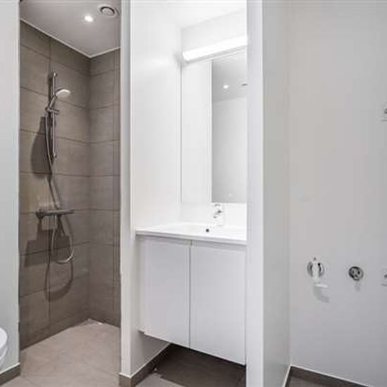 VELKOMMEN TIL VÆKSTHUSET Boligen Lejlighederne er indrettet med åbent køkken i direkte forbindelse med en dejlig lys spiseplads. Der er desuden tildelt et aflåseligt depotrum på ca. 4,5 m3 (2 m2), placeret i fælles depotrum på 1. og 2. sal. Det gennemgående gulv i stue, værelse og køkken og gangareal er højtrykslaminat i mørk grå nuance. I badeværelset er der grå klinket på gulvet samt på væggene i brusenichen. Køkkenet er fra Svane og hårde hvidevarer er i anerkendt kvalitet. Køkkenet er udstyret med kogeplade, emhætte og indbygningsovn og ...