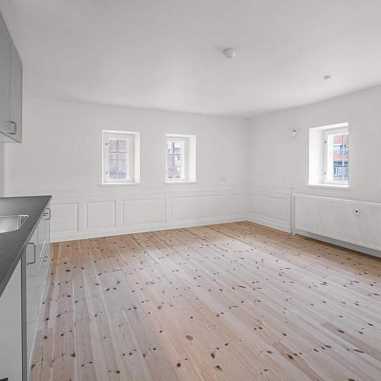 Moderne lejeboliger i historiske rammer og smukke omgivelser Det tidligere psykiatriske hospital i Risskov er forvandlet til et unikt boligområde, hvor moderne lejeboliger smelter sammen med arkitekt Gottlieb Bindesbølls historiske bygninger. Området blev oprindeligt placeret i Høje Risskov netop for at skabe ro og helbredelse – og denne særlige atmosfære mærkes stadig i dag. De klassiske gule murstensbygninger, de grønne omgivelser og den fredelige stemning giver området en karakter, man sjældent finder andre steder. Boligerne er nænsomt r...