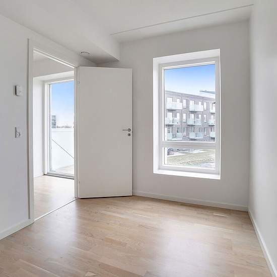 Alle lejligheder har et køkken-alrum i åben forbindelse med stue. I de ét-værelses lejligheder fungerer køkken-alrummet ligeledes som soveværelse. Ellers har du ét eller to separate værelser. Badeværelset er velindrettet med vaskefaciliteter og der er gulvvarme i alle rum. De fleste har egen terrasse eller altan - enkelte lejemål har ikke. Lejlighederne er delevenlige. Hårde hvidevarer Boligerne har alt i hårde hvidevarer inklusive vaskemaskine, tørretumbler og opvaskemaskine. Husdyr Lejere kan ansøge om tilladelse til at holde indekat og...