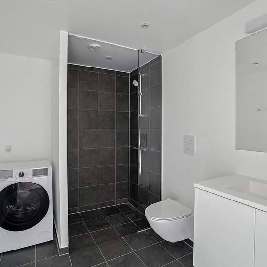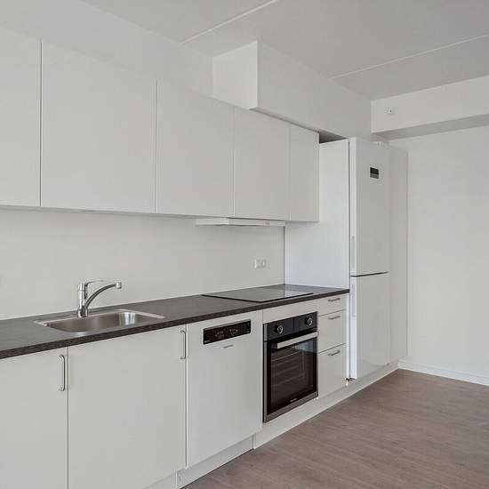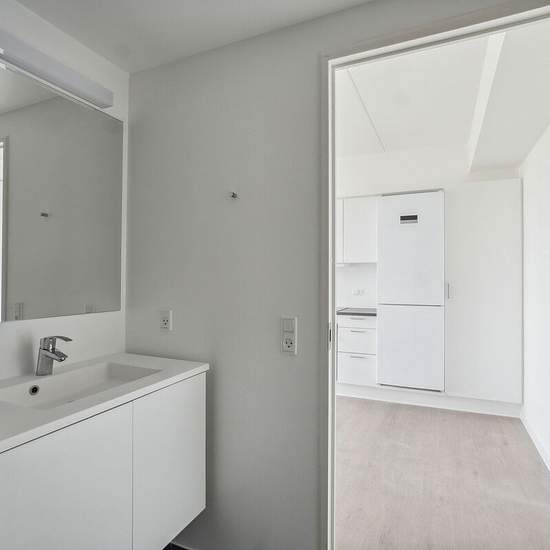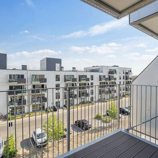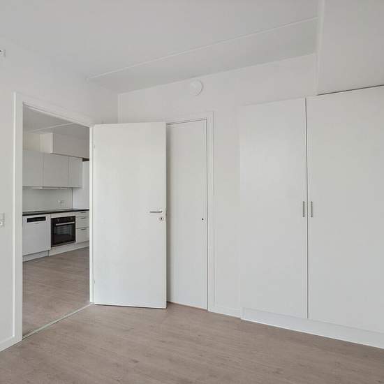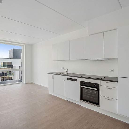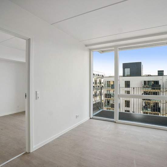Du træder ind i et funktionelt køkken-alrum, som ligger i åben forbindelse med stuen, hvorfra der er direkte adgang til boligens altan. Der er ét eller to separate værelser afhængigt af boligens størrelse. Der er indbyggede skabe i soveværelserne. Du får et godt badeværelse med vaskefaciliteter, og der er gulvvarme i alle rum. Det er muligt at få en bolig i ét- eller to-plan. Boligerne er i udgangspunktet ens i deres udformning og kvadratmeter, med den forskel at lejlighederne i to-plan har ét stort vinduesparti fra gulv til loft i køkken-a...