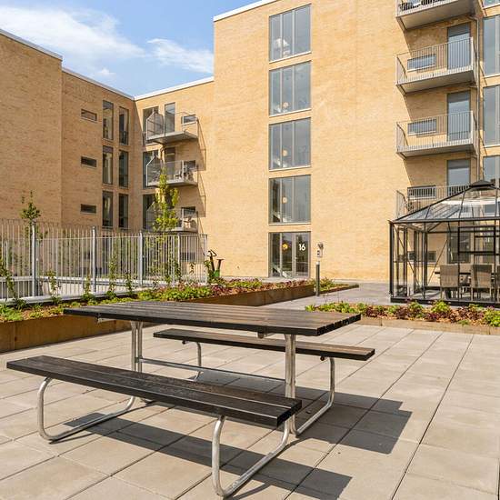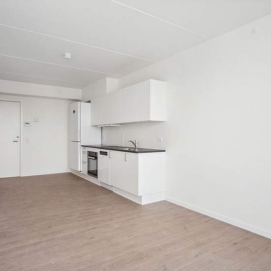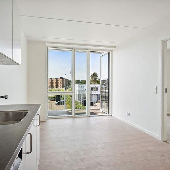 Du træder ind i et funktionelt køkken-alrum, som ligger i åben forbindelse med stuen, hvorfra der er direkte adgang til boligens altan. Der er ét eller to separate værelser afhængigt af boligens størrelse. Der er indbyggede skabe i soveværelserne. Du får et godt badeværelse med vaskefaciliteter, og der er gulvvarme i alle rum. Det er muligt at få en bolig i ét- eller to-plan. Boligerne er i udgangspunktet ens i deres udformning og kvadratmeter, med den forskel at lejlighederne i to-plan har ét stort vinduesparti fra gulv til loft i køkken-a...