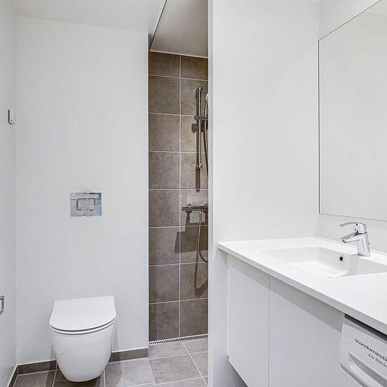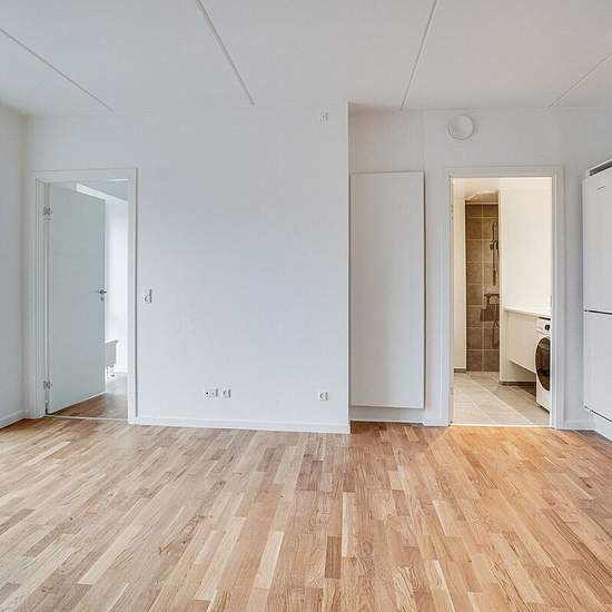 Alle lejligheder har et køkken-alrum i åben forbindelse med stue. I de ét-værelses lejligheder fungerer køkken-alrummet ligeledes som soveværelse. Ellers har du ét eller to separate værelser. Badeværelset er velindrettet med vaskefaciliteter og gulvvarme. Alle lejemål har egen terrasse eller altan. Hårde hvidevarer Boligerne har alt i hårde hvidevarer inklusive vaskemaskine, tørretumbler og opvaskemaskine. Husdyr Lejere kan ansøge om tilladelse til at holde indekat og hund på adressen. Udekatte er ikke tilladt. Se vores samlede husdyrsreg...