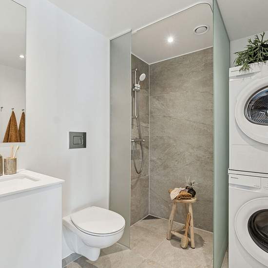 Om lejlighederne: Alle lejligheder er udstyret med altan eller terrasse og boligerne er indrettet i smagfulde materialer. Generelt er der lagt vægt på rummelige leverum indrettet med Invitakøkkener i moderne og stilrene designs, egetræsgulve og flot lysindfald fra de store vinduespartier. I alle lejligheder, er der etableret gulvvarme, herunder også i badeværelset, som er udstyret med energivenlig vaskemaskine og tørretumbler. I lejlighederne er der lagt vægt på gode opbevaringsløsninger i form af skabe og alle lejligheder har adgang til pri...